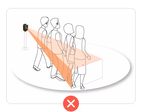 También evite las áreas en las que el comportamiento de los usuarios interrumpe la medición: personas que estacionan, esperan, chatean, se detienen durante mucho tiempo (teléfono), grupos que pasan uno al lado del otro o flujos que se cruzan simultáneamente.