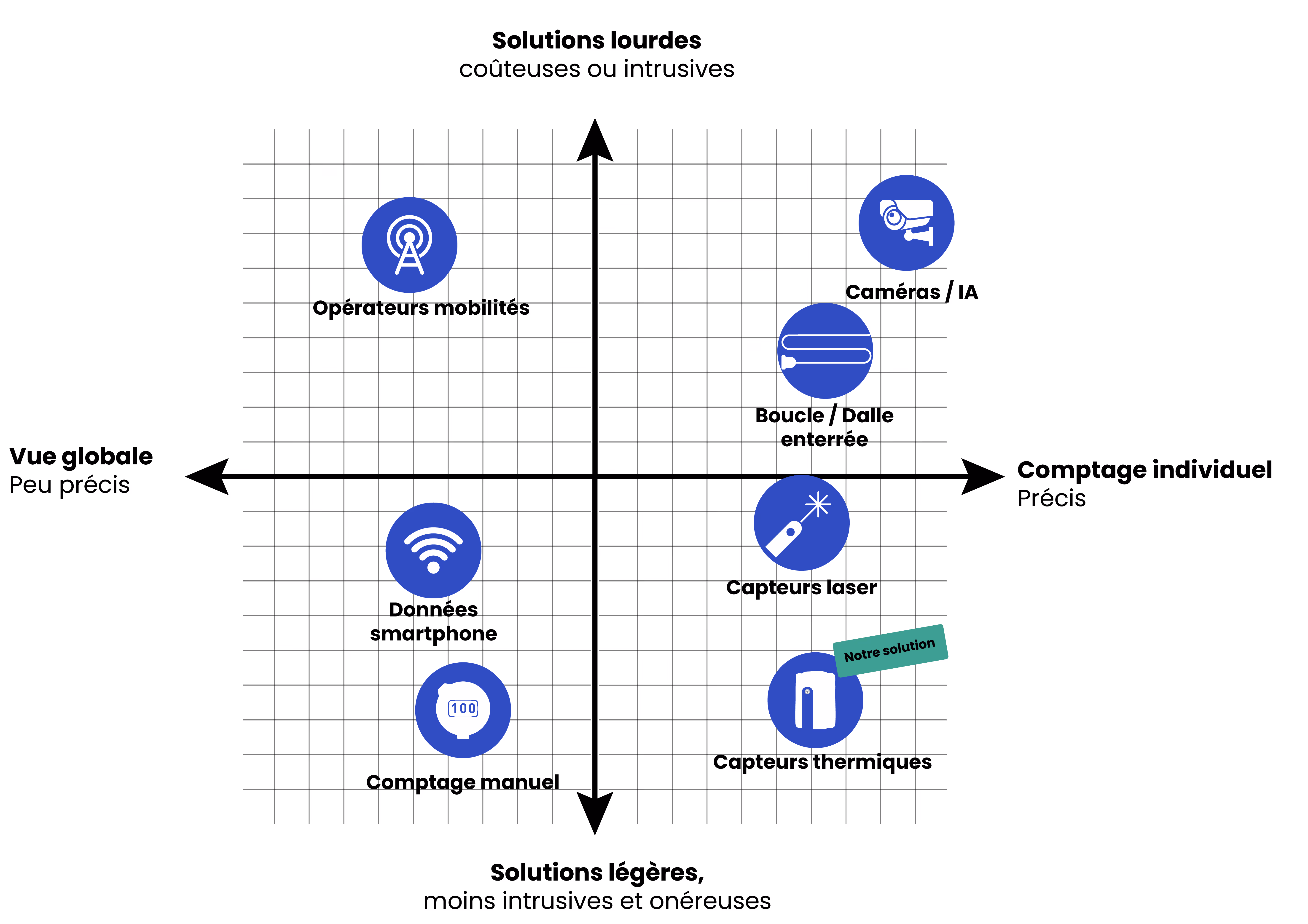 Pour mesurer et analyser les déplacements de piétons, cyclistes et véhicules dans les espaces publics, il existe aujourd’hui une large gamme de technologies. Chacune présente ses avantages, ses limites, et répond à des besoins différents selon les cas d’usage. Cet article propose un panorama complet des principales solutions disponibles sur le marché, illustré par un tableau comparatif et un schéma visuel pour guider le choix.